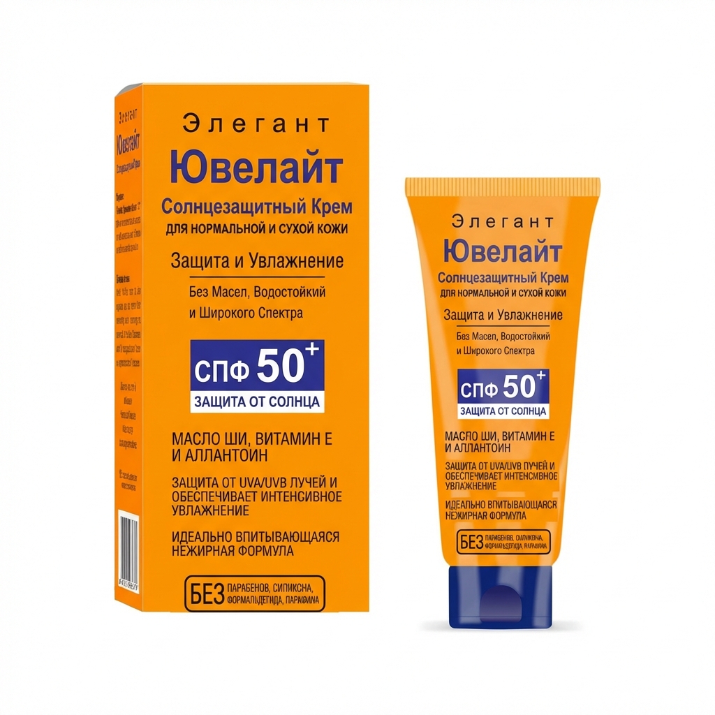 60 г солнцезащитного крема ЮВИЛАЙТ SPF 50+ в пластиковой тубе с коробкой.