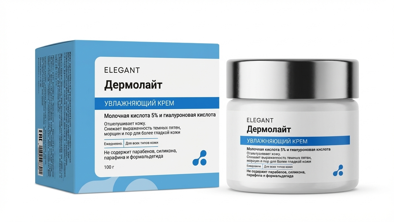 100 г крема ДЕРМОЛАЙТ УВЛАЖНЯЮЩИЙ в пластиковой баночке в картонной коробке.